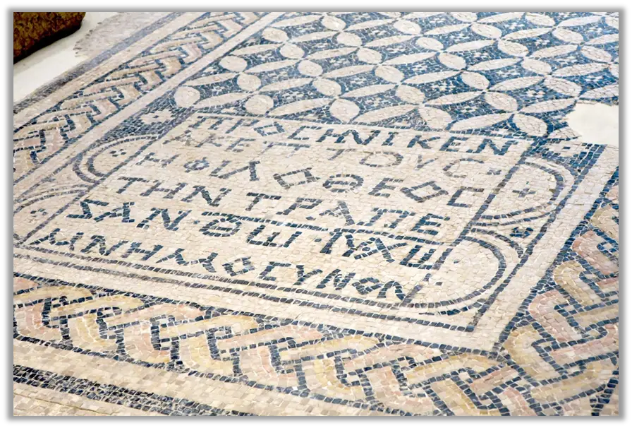 O Mosaico de Megiddo não é apenas um artefato arqueológico; é um testemunho eloquente da fé viva dos primeiros cristãos. Localizado no piso de uma antiga igreja doméstica, o mosaico apresenta inscrições em grego que não apenas declaram a divindade de Cristo, mas também homenageiam membros da comunidade que contribuíram para a construção do local de culto. Entre estes, destaca-se uma mulher chamada Akeptous, descrita como “amante de Deus”, que dedicou a mesa (altar) em memória de “Jesus Cristo, Deus”.